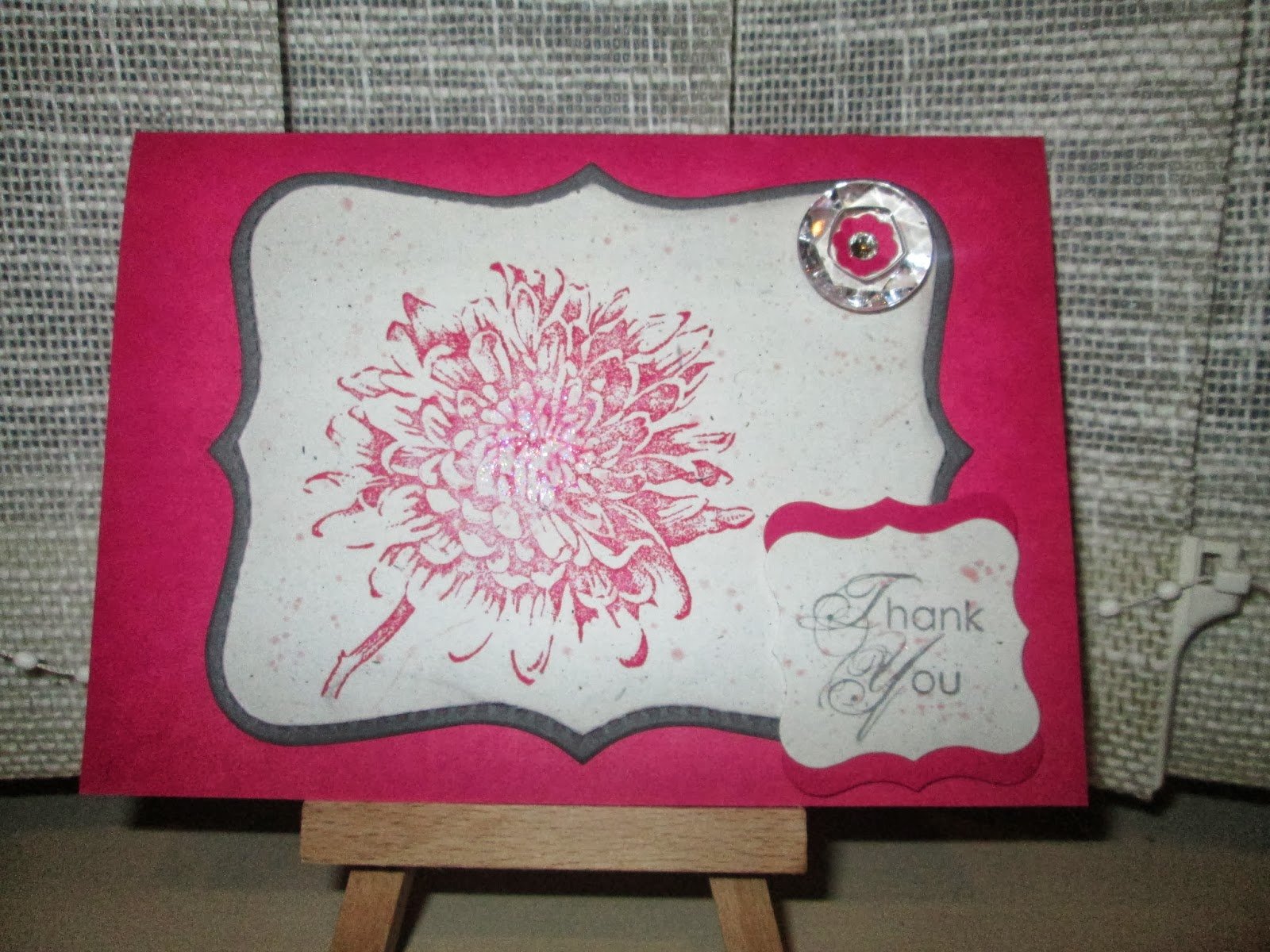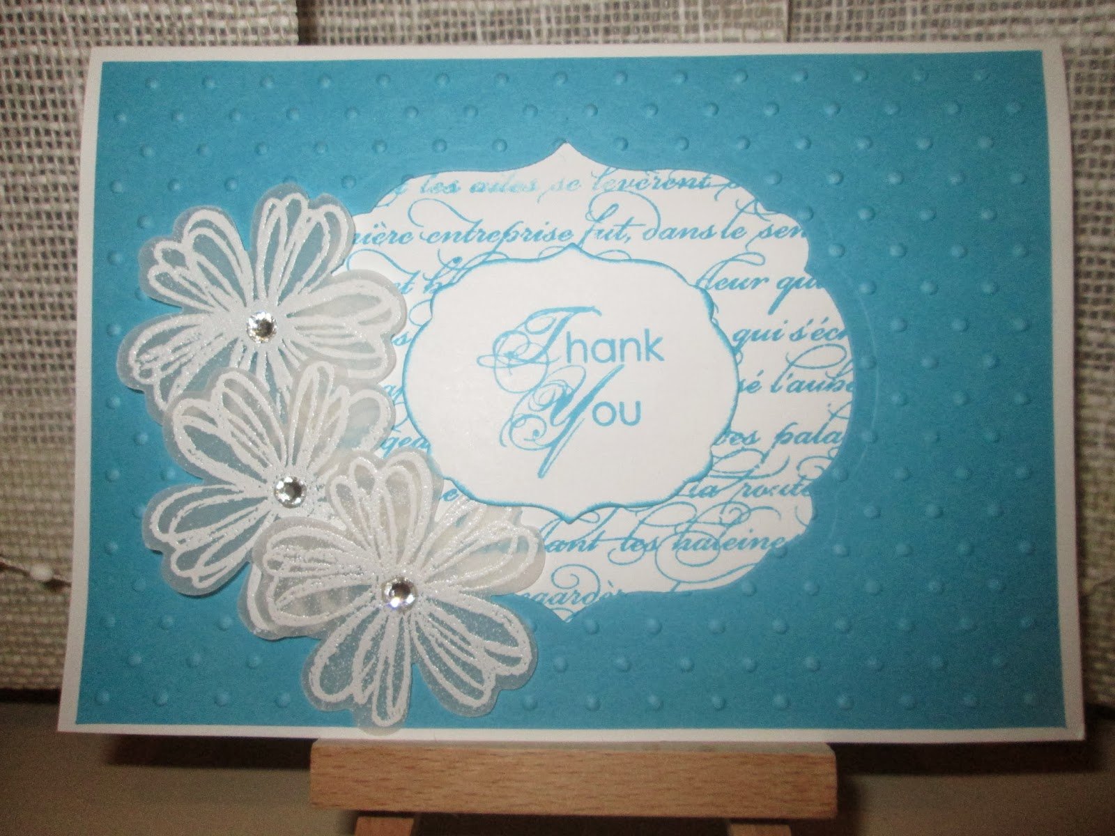 This very elegant card swap from Liz was gorgeous, my very favourite colour with beautiful velum flowers with bling. Perfect!