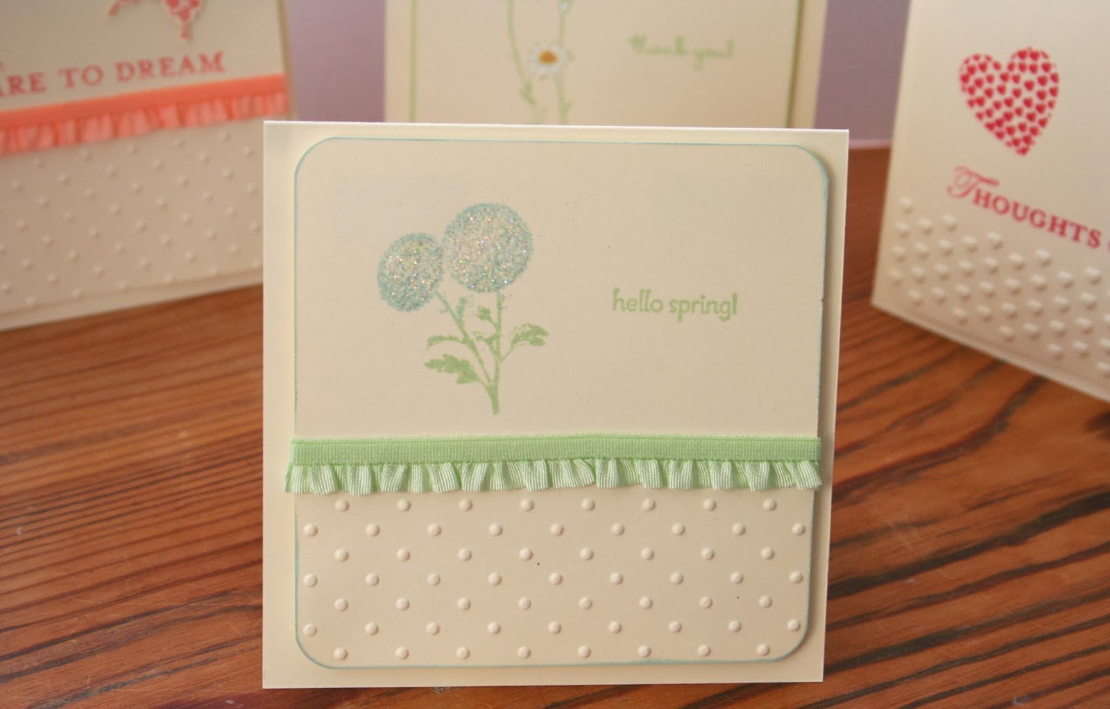 These cards were a joy to make. I love small cards and the new stamp set, Springtime Hello, was just right to use on two of them.