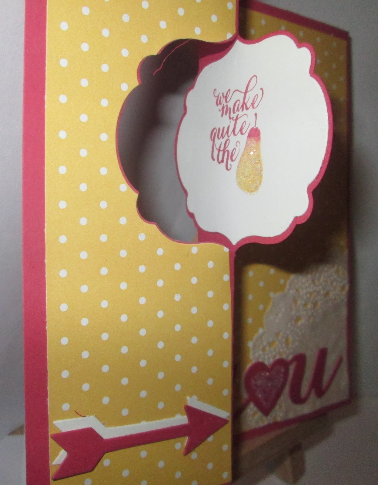 | Sarah’s tricky (for me) card. I landed up putting the sentiments the wrong way round but hey, it still looked good. |
