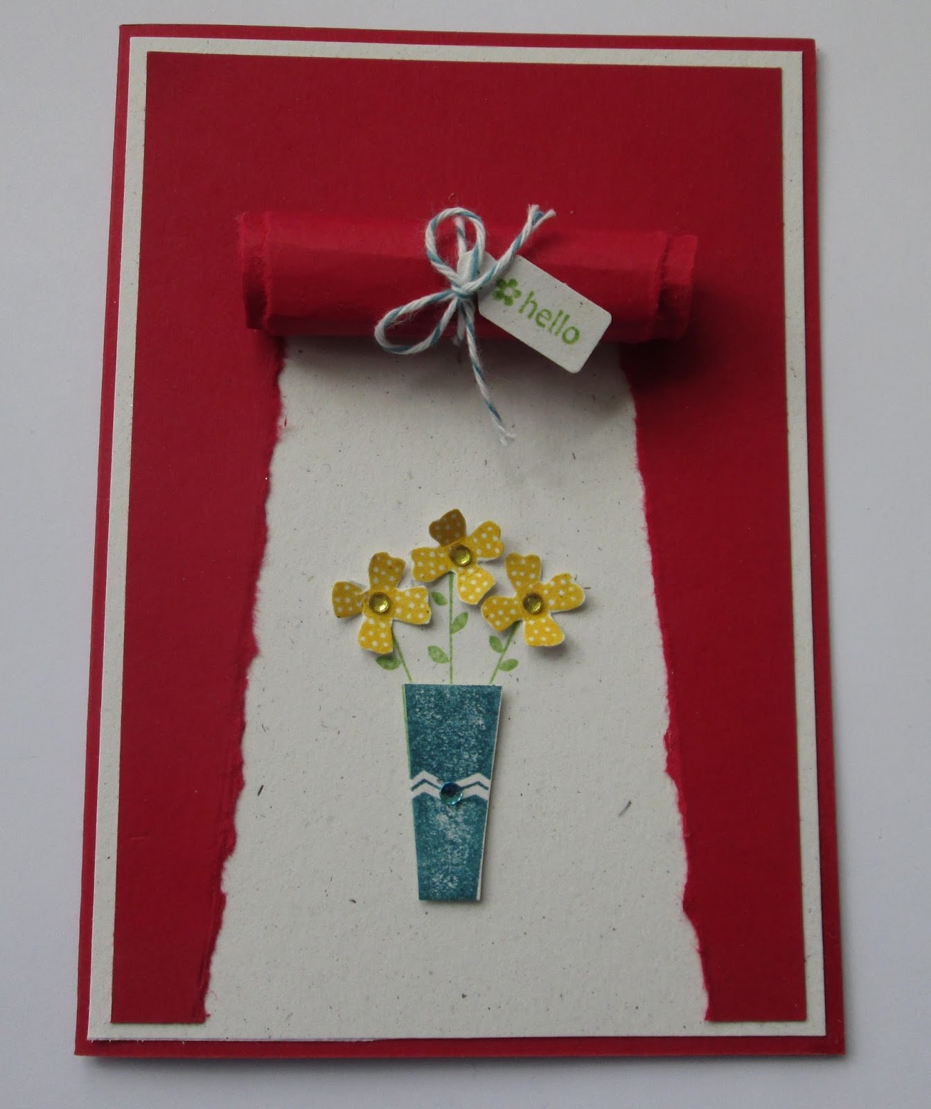 | The next card was designed by Liz. She is so creative isn’t she? It took some courage to tear the paper but we just went for it! Love this card |