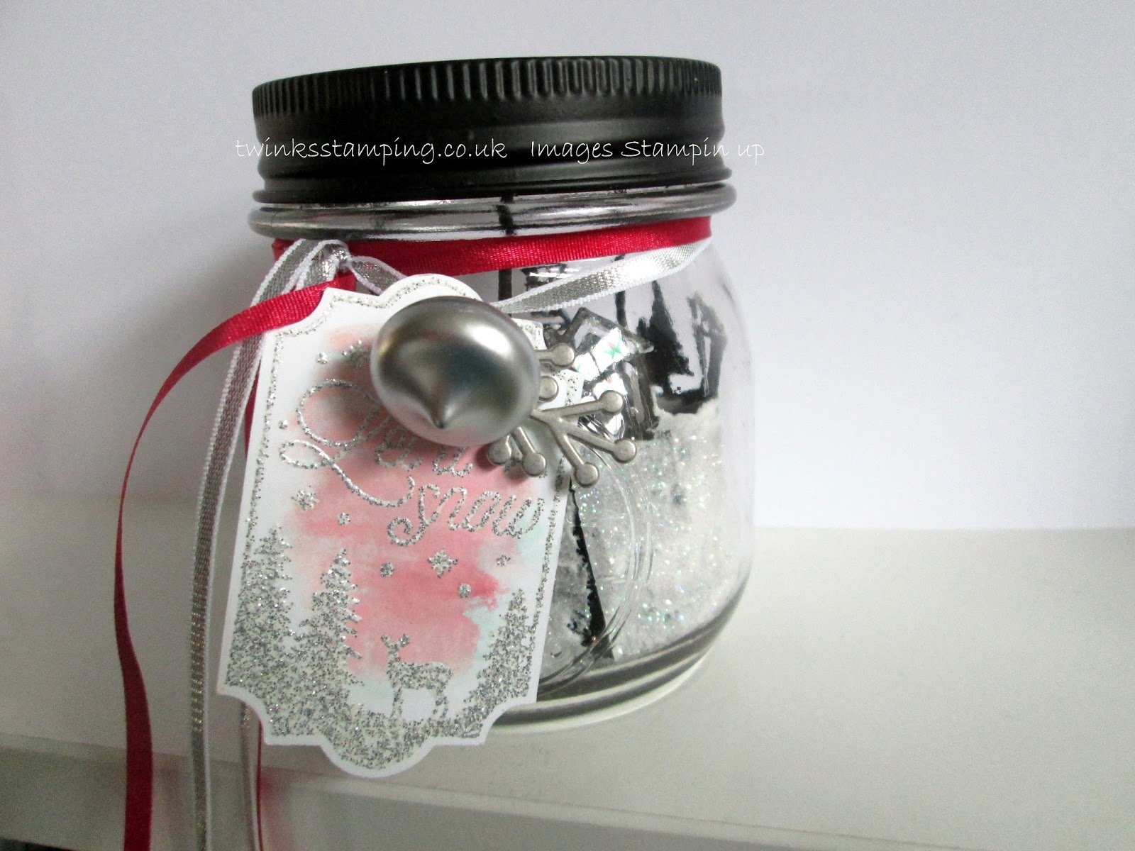 The biggest challenge was getting the edgelits to stand upright in a round (ish) jar. All I did was pad the bottom of the jar with cotton wool which forces the card against the jar. Perfect.