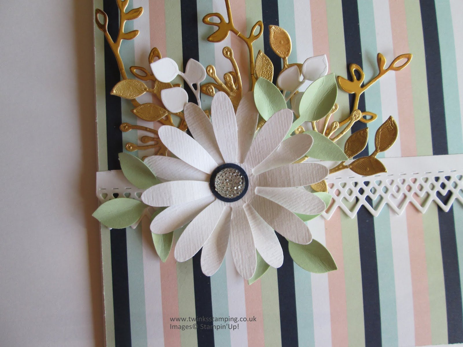 Hi, sharing a little folder using the gorgeous Twinkle Twinkle Designer Series Paper.  I got the inspiration for the folder from Amanda Charlesworth  (scrimpingmommy).  The flower was punched out from a piece of Whisper White card which had been embossed using the Subtle Dynamic Textured Embossing Folder.