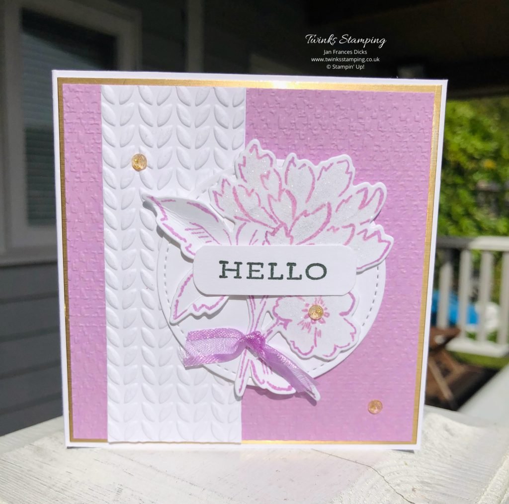 Hi, how are you all ? How is your week going? Well, there has still been no improvement in our weather here in the South East of England. We have had yet more rain and high winds too! Is it really summer?? Anyway, I have come along today to create a Hand Penned Petals 4″x4″ card that may inspire you x