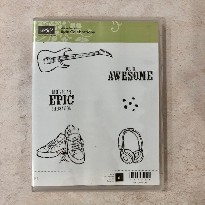 Retired pre loved Stampin’Up Stamp Set – Epic Celebrations – WOODEN STAMP SET